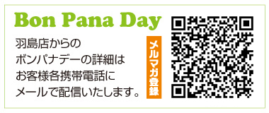 【QRコードを読み込みできないお客様】qrhashima@bonpana.comに空メールをお送りいただくと登録されます